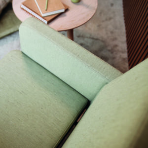 Clara is a series consisting of armchair, two-seater and three-seater sofa. The legs are made in solid birch and can be clear lacq. or stained. The removable cushions consist of removable fabric and are attached with velcro. The cushions can be delivered both with or without urine-protection. Between the seat and the Back: there is a gap to facilitate cleaning. The armrests are upholstered with fabric and armrest protection is available.