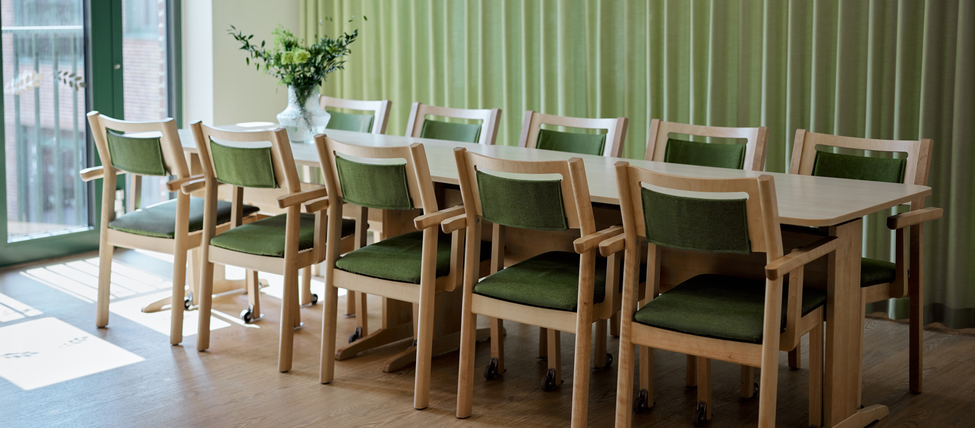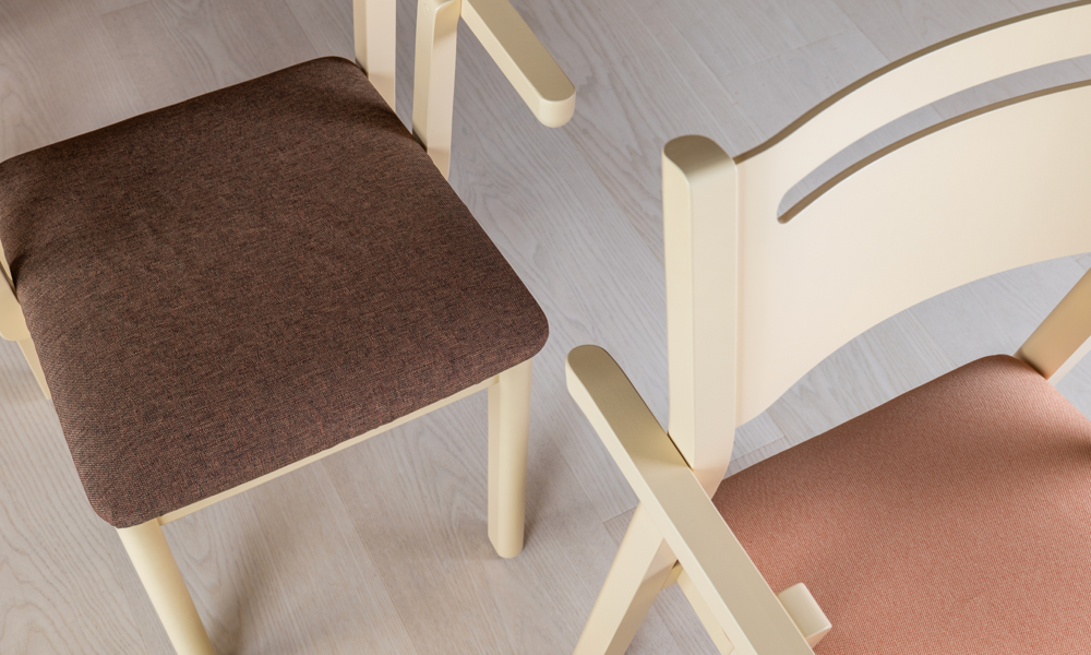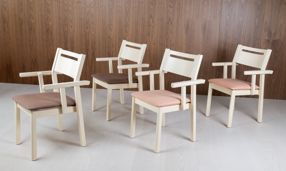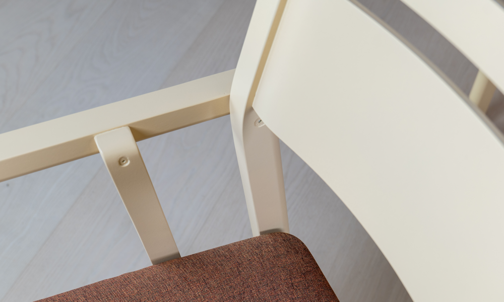 Alma är en stapelbar stolserie i massiv björk som kombinerar stilfull enkelhet med väl genomtänkta egenskaper. Denna stol görs som standard i klarlackad eller vitbetsad björk men även andra utförande av bets är möjliga. Alma levereras med urinväv på sitsen som i sin tur kläs med en fast eller avtagbar klädsel. Möjlighet finns även till ryggdyna, akustikplatta och kopplingsbeslag kan väljas till. Vid framåtpekande armstöd kan karmstolen hängas upp på bord.