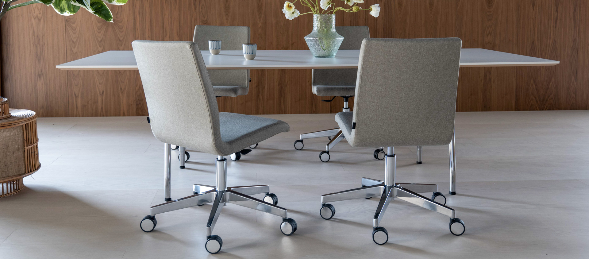 Bizz är en bekväm stol med låg eller hög rygg på snurrstativ i återvunnen aluminium som poleras eller lackas. Stativet kan fås med hjul eller glidfötter. Stolen är höj- och sänkbar med 12,5 cm. Tiltfunktion som tillval. Passar bra både som konferensstol och som kontorsstol.