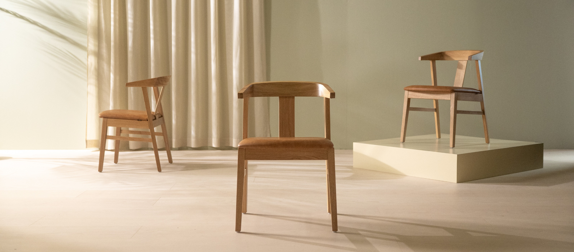 Coach är en trästol i antingen klarlackad eller svartbetsad massiv ek. Möjligheten finns dessutom att erhålla Coach i annan önskad bets. Sitsen finns i konstläder som standard men kan kläs i valfritt tyg eller konstläder. Coach kan hängas upp på bord, vilket förenklar städning.