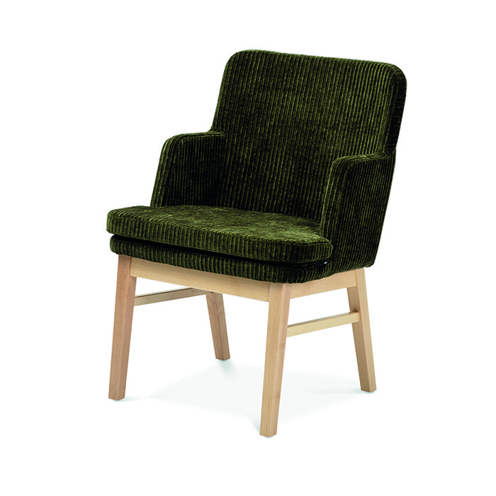 Eat är en rymlig helklädd karmstol med underrede i trä eller metall. Möjligheten finns även till stativ i björk med kundbets. Sittdynan är avtagbar för att underlätta renhållning och utbyte.