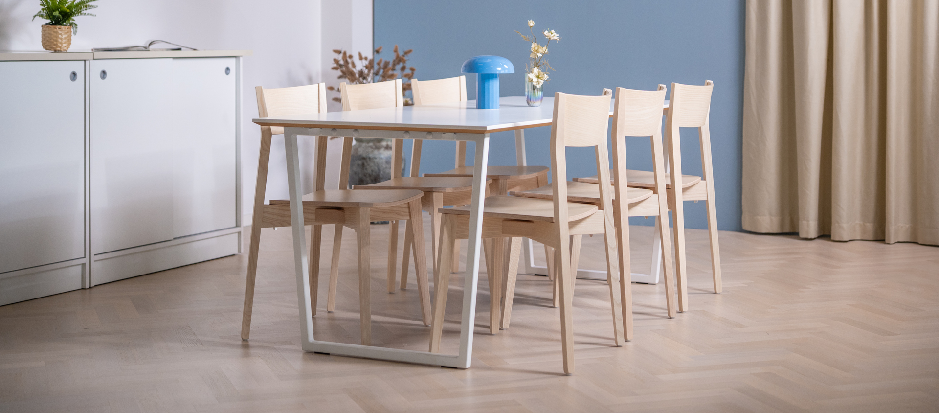 Framie är en bordsserie med stor valfrihet. Bordsskivorna och stativen finns i olika storlekar och utföranden. Framie är byggbart och kommer med vit högtryckslaminat, fasad kant och lackat stativ i vit, svart eller silver samt krom som standard. Med möjligheten att lackera i önskad färg skapas ytterligare möjligheter för Framie bordsserie. Bordets totalhöjd är 72 cm och 87 cm. För bordshöjd 87 cm är minsta bredd på bordsskiva 90 cm.